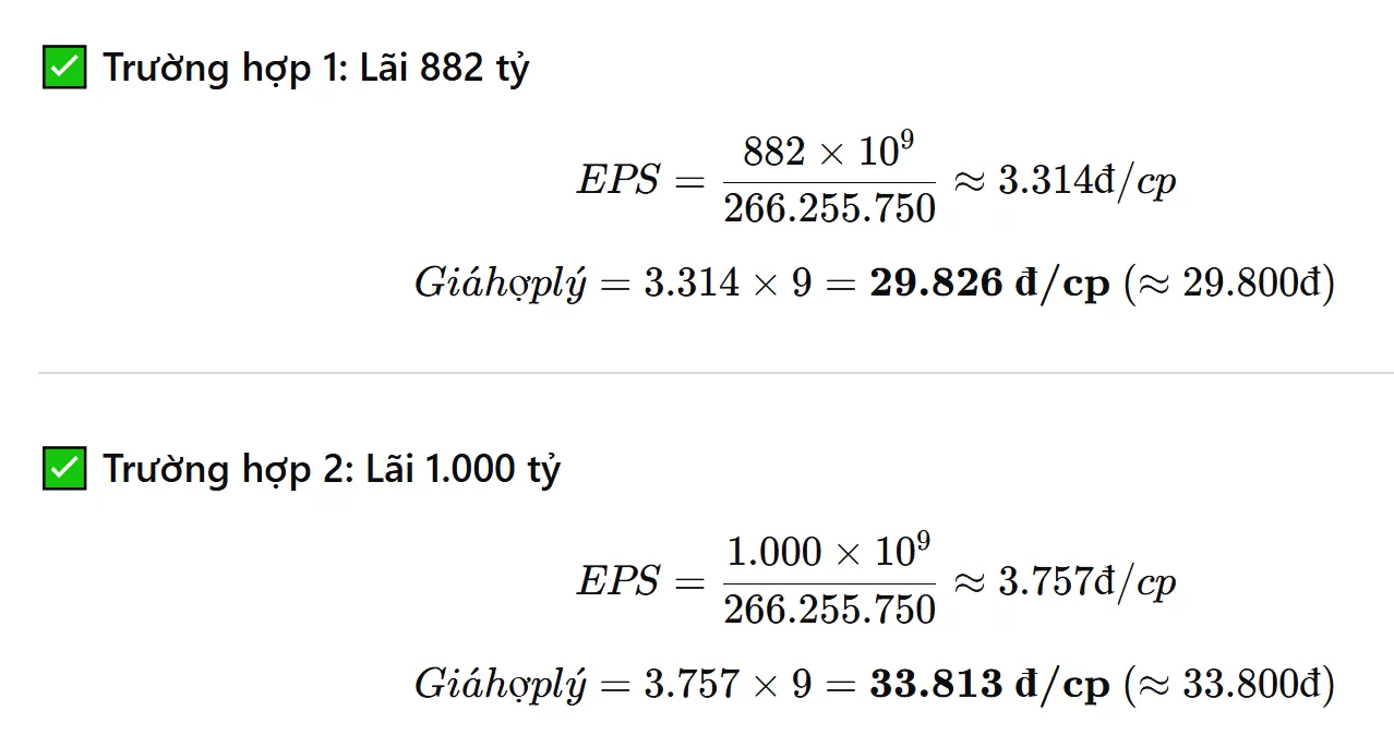 | Lợi nhuận sau thuế 2025 | EPS (ước tính) | P/E ngành 9 | Thị giá hợp lý |