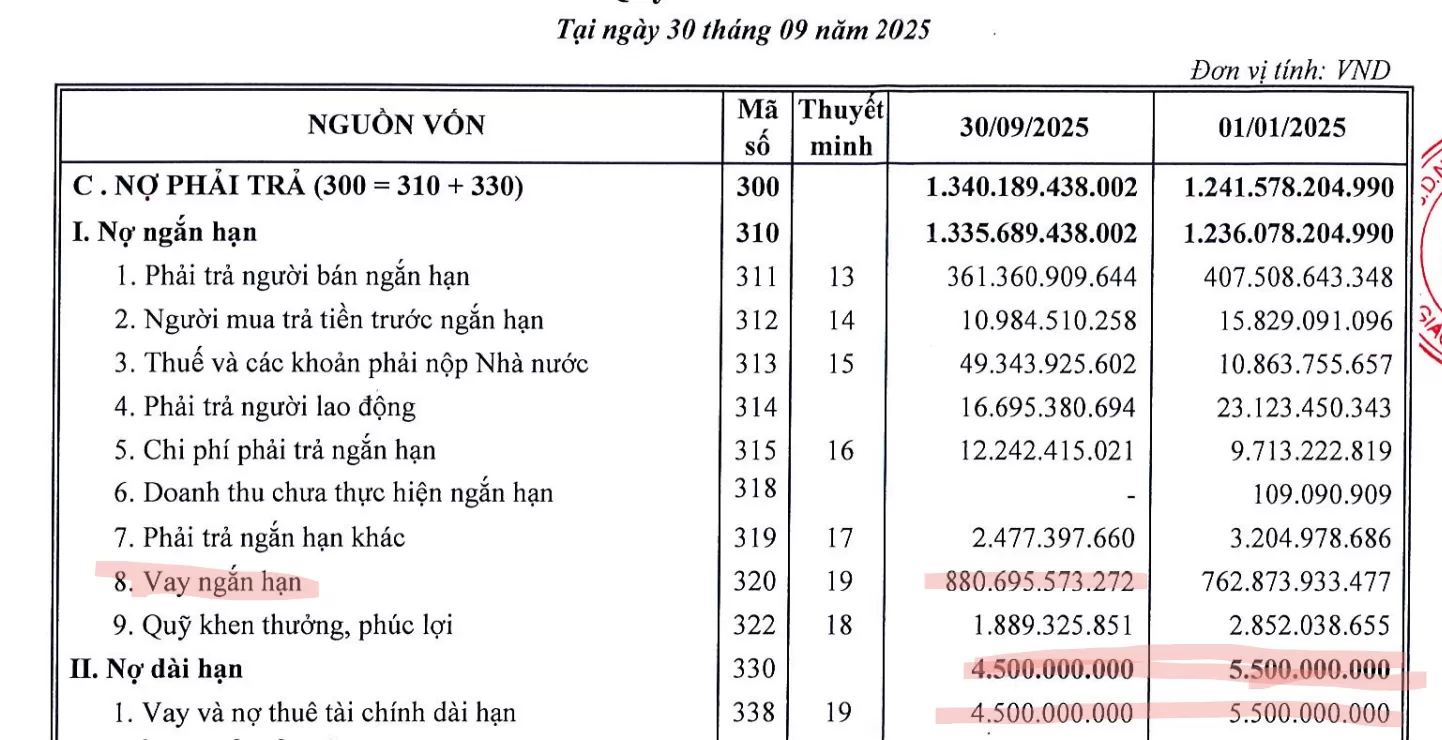 Trong phần vay ngắn hạn 880 tỷ , vay dài hạn gần như không có